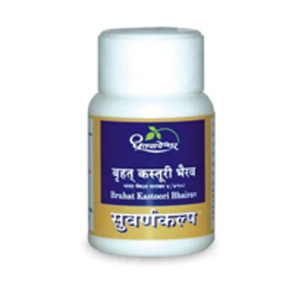 Bruhat Kastoori Bhairav: The Suvarnakalpa especially effective in various types of Jwara as well as Sannipatik and Vishamjwara. Effective Amapachak action. Useful in Sannipatik Jwara with symptoms like Nadiksheenata, Tandra and fever with chills also in Pyrexia of Unknown Origin (PUO)